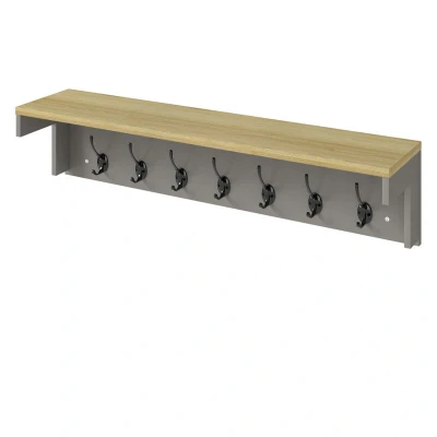 Description The Levede wall mounted coat rack is a space-saving storage solution designed to keep entryways, hallways and living areas organised and clutter-free. This wooden coat rack helps solve common household storage problems by providing secure hanging space for coats, bags and accessories while keeping floors clear. With an integrated shelf and multiple hooks, it works as a practical entryway coat rack, hallway coat rack and wall rack for everyday organisation. Key Features WALL MOUNTED COAT RACK WITH SHELF : This wall coat rack combines a sturdy top shelf with hanging hooks, offering both display and storage in one compact wall-mounted design. 7 DOUBLE COAT HOOKS FOR DAILY USE : Equipped with seven dual hooks, this wooden coat rack provides generous hanging capacity for coats, bags, hats, towels and accessories. STRONG & RELIABLE HOOK SUPPORT : Each double hook supports up to 5kg, making this wall mounted coat rack suitable for everyday household items without bending or