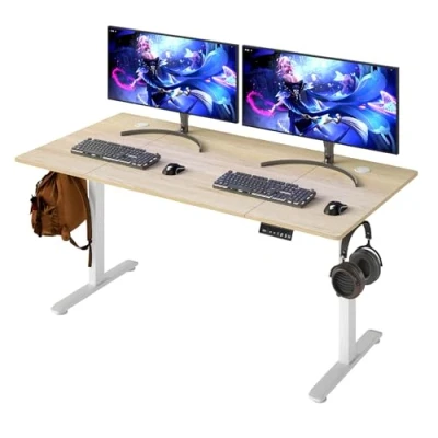 ManoManoDescription Upgrade your workspace with the electric standing desk, designed for ergonomic comfort and efficient organization. Featuring a quiet single-motor lift system (≤55dB) with 72–116cm adjustable height, this desk allows smooth transitions from sitting to standing. The E0-grade 160×80cm tabletop provides ample space for monitors and accessories, while dual hooks keep essentials within reach. Built with reinforced 6.5×4.5cm steel legs for superior stability and a child-lock safety feature, it combines style, safety, and durability—ideal for home or office use. Key Features: S mooth Electric Lift: Single-motor system offers quiet and stable height adjustment (≤55dB) Spacious Worktop: Large 160×80cm E0-grade board desktop fits multiple screens and accessories Smart Safety Lock: Built-in child-lock function prevents accidental operation Enhanced Stability: Thickened steel frame with 6.5×4.5cm legs supports up to 100kg Functional Storage: Includes dual side hooks for better