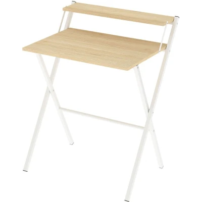 ManoManoDescription This foldable computer desk offers a practical solution for small spaces, combining a no-assembly design with a sturdy and comfortable workspace. It arrives fully assembled and can be used straight out of the box, saving time and effort. The desk features a spacious tabletop, providing ample room for daily tasks. The integrated monitor shelf enhances vertical storage and keeps the desktop tidy. With a folding design, it can be easily stored under the bed, inside a cabinet, or behind a door when not in use. Built with a durable 15 mm particle board top and a powder-coated steel frame, it supports up to 50 kg while remaining lightweight for effortless movement between rooms. Ideal for bedrooms, living areas, and small apartments. Key Features: No-Assembly Structure: Arrives fully assembled for immediate use without tools or setup Spacious Work Surface: Offers a comfortable tabletop with generous legroom Integrated Monitor Shelf: Additional upper shelf helps organise items