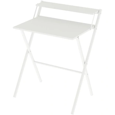 ManoManoDescription This foldable computer desk offers a practical solution for small spaces, combining a no-assembly design with a sturdy and comfortable workspace. It arrives fully assembled and can be used straight out of the box, saving time and effort. The desk features a spacious tabletop, providing ample room for daily tasks. The integrated monitor shelf enhances vertical storage and keeps the desktop tidy. With a folding design, it can be easily stored under the bed, inside a cabinet, or behind a door when not in use. Built with a durable 15 mm particle board top and a powder-coated steel frame, it supports up to 50 kg while remaining lightweight for effortless movement between rooms. Ideal for bedrooms, living areas, and small apartments. Key Features: No-Assembly Structure: Arrives fully assembled for immediate use without tools or setup Spacious Work Surface: Offers a comfortable tabletop with generous legroom Integrated Monitor Shelf: Additional upper shelf helps organise items