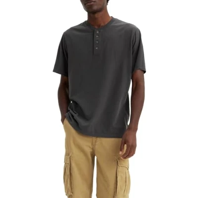 Cut with a relaxed fit This versatile Short-Sleeve Four-Button Henley is a closet essential; with its relaxed fit and four-button placket, you can't go wrong; it just works LEVI'S TAB: There are different variations of the well-known red tab; all products are original Levi's products, no matter if it says LEVI'S, Levi's, no writing or is in a different colour