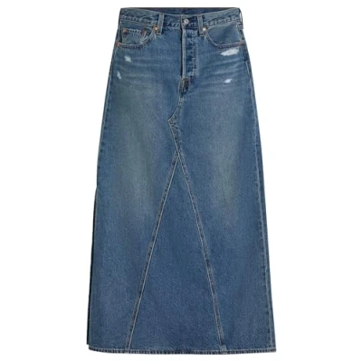 Timeless, maxi length denim skirt Cut with an a-line fit With back pockets that were designed to flatter just like the ones on your favorite 501 jeans LEVI'S TAB: There are different variants of the well-known red "tab". Whether Levi's, Levi's, without lettering or in another colour, this is an original Levi's product. Expect a very tight fit initially. Will loosen over time but won't stretch back. Perfect for a classic, rigid denim feel.