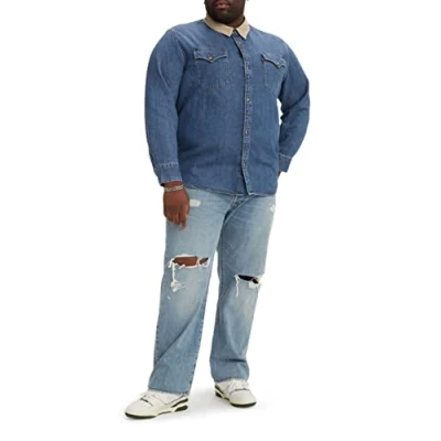 Levi's Men's 501® Original Fit Big & Tall Jeans, Light Indigo Destructed, 48W / 32L