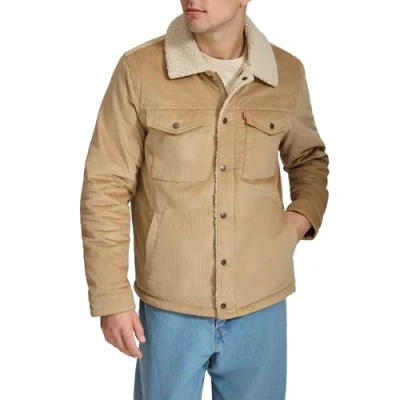 Levi's Men's Sherpa Lined Trucker Jacket (Regular & Big Tall Sizes), Sand Wide Wale Corduroy, S