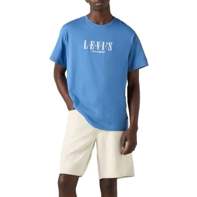 Levi's Men's Ss Relaxed Fit Tee T Shirt, Serif Logo Dutch BLU, XL