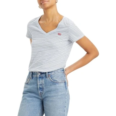 Levi's Perfect V NECK Print Tshirt, Women's, Size: XXS, Penny stripe kentucky blue