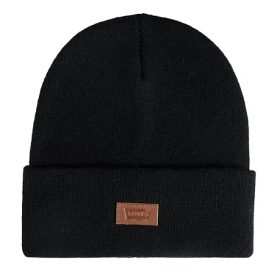 Levi's Unisex's All Season Comfy Leather Logo Patch Cuffed Hero Beanie Hat, Black/Tan, One Size