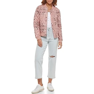 Levi's Women's Diamond Quilted Bomber Jacket with Front Pockets Regular & Plus Sizes, Mahogany Bandana Print, S