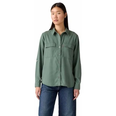 Levi's Women's Doreen Utility Shirt Greens, Dark Forest, S