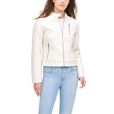 Levi's Women's Faux Leather Motocross Racer Jacket (Standard and Plus), Oyster, M