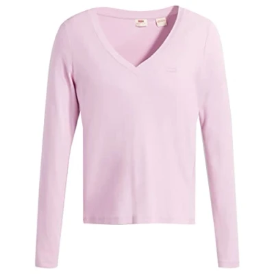 Levi's Women's Long Sleeve V Neck Baby Tee T Shirt, Pink Lavender, XL