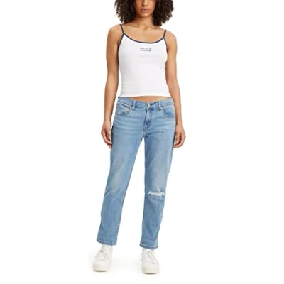 Levi's Women's Mid Rise Boyfriend Jeans, Light Indigo Worn, 27W / 30L