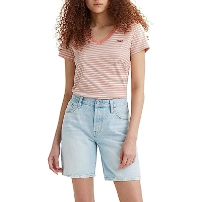 Levi's Women's Perfect V Neck T Shirt, Indigo Stripe Terra Cotta, XXS
