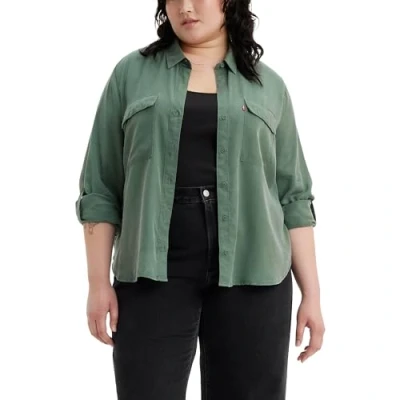 Levi's Women's Plus Size Doreen Utility Woven Shirts, Dark Forest, 1XL