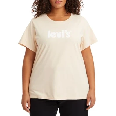 Levi's Women's The Perfect Tee Poster Logo T Shirt, Peach Puree, M