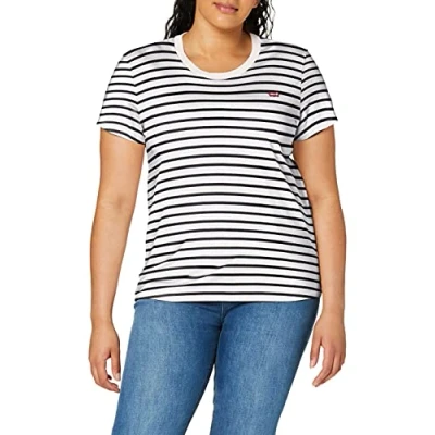 Levi's Women's The Perfect Tee Striped Chesthit Logo T Shirt, Cloud Dancer, XXS
