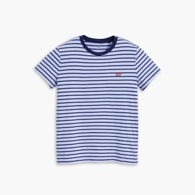 Levi's Women's The Perfect Tee Striped Chesthit Logo T Shirt, Tea Stripe Brunnera Blue, XXS