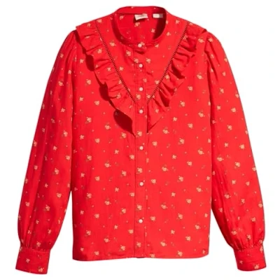 A western long-sleeve blouse Cut with an easy, standard fit With ruffle detailing Crafted with soft and airy linen which will keep you cool and comfy when it's hot outside LEVI'S TAB: There are different variations of the well-known red tab; all products are original Levi's products, no matter if it says LEVI'S, Levi's, no writing or is in a different colour