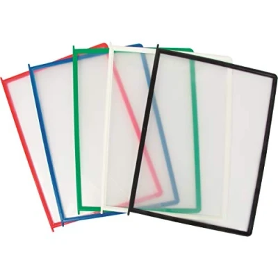 Easy insertion of documents: The fold-down PP film in the corner allows documents to be inserted quickly and effortlessly The robust, flexible plastic frame construction prevents deformation and guarantees a long service life. Versatile application options: Ideal for presenting A4 documents such as photos, instructions and maps Proven in production facilities, offices and supermarkets. Compatibility: Compatible with most commercially available presentation systems. Practical set: The set includes 10 A4 frames in 5 colours (2 per colour). Protection and convenience: The films protect your documents from damage and soiling Easy assembly and disassembly.