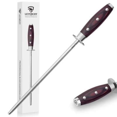 LEVINCHY 10 inch Honing Steel with Pakkawood Handle, Knife Sharpener Rod, Professional Sharpening