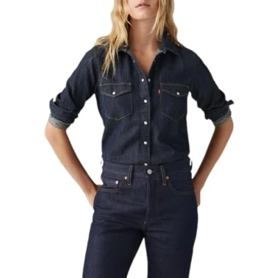 Levi's Iconic Western Buttondown blouse darkblue denim, Women's, Size: Medium, Dark/blue denim
