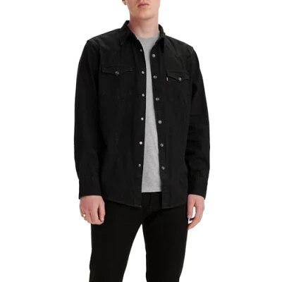 Levi's Men's Barstow Western Standard Woven shirts, Marble Black Denim Rinse, XXL