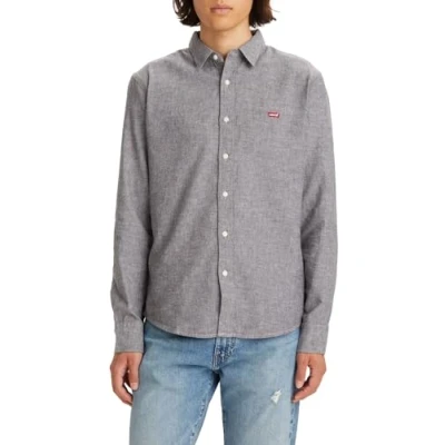 Levi's Men's Long Sleeve Battery Housemark Slim Shirt, Black Agate, XL