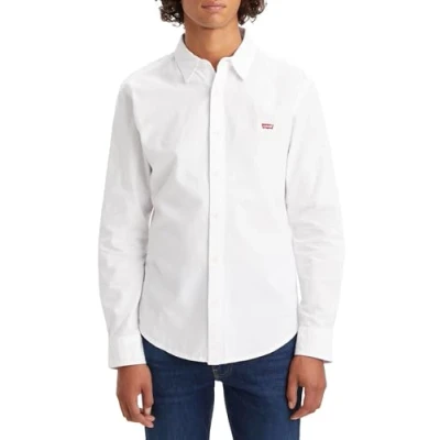 Levi's Men's Long Sleeve Battery Housemark Slim Shirt, White, XXL