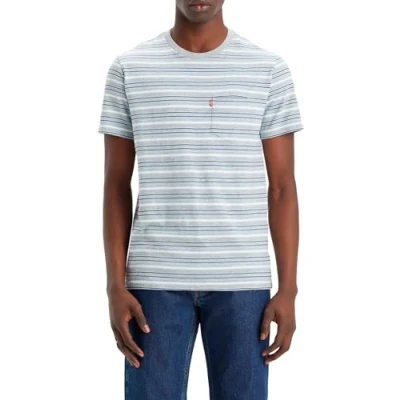 Levi's Men's Short Sleeve Classic Pocket Tee T Shirt, Lighthouse Stripe Midtone Heather Grey Slub, S