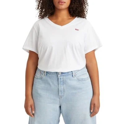 Levi's Plus Perfect V NECK TEE Basic Tshirt, Women's, Size: 26/28, Bright white