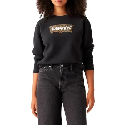 Levi's Women's Everyday Crew Sweatshirt, Annessa Cheetah Bw Fill Caviar, L