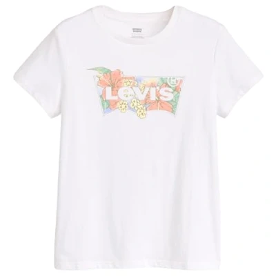 Levi's Women's The Perfect Tee Graphic Batwing Logo T Shirt, Hibiscus Bw Fill Bri, XS