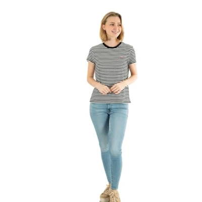 Levi's Women's The Perfect Tee Striped Chesthit Logo T Shirt, Raita Stripe Caviar, XXS