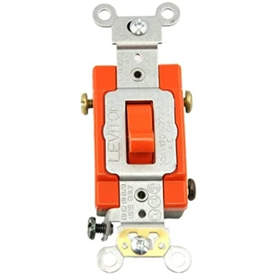 Leviton 1223 2R 20 Amp, 120/277 Volt, Toggle 3 Way AC Quiet Switch, Extra Heavy Duty Spec Grade, Self Grounding, Back and Side Wired, Red