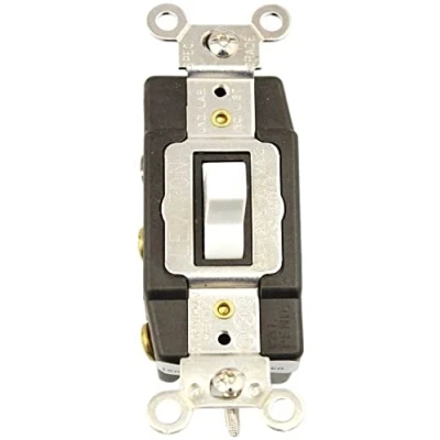 Positive Switching Action with Center-Off Position Large Silver Cadmium-Oxide Contacts for Long Life, Prevent Sticking, Welding and Excessive Pitting Clamp-Type Terminals Accept up to #10 CU Wire Full Rated Current Capacity on Fluorescent, Tungsten and Resistive Loads; Motor Load Capacity up to 80% Switch Current Rating Backed by a Limited Ten-Year Warranty