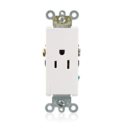 Leviton 5325 W 15 Amp, 125 Volt, Decora Duplex Receptacle, Residential Grade, Grounding, White