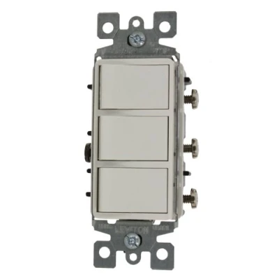 15A 120V 3 DEC COMBO SW WHT Elegant Decora brand styling provides multiple control in a single-gang wallbox Impact-resistant thermoplastic and double-wipe contacts Common shunted internally to all switches Feature: Single-Pole / Single-Pole / Single-Pole Item Package Dimension: 4.53L x 1.85W x 1.77H inches Item Package Weight - 0.22 Pounds Item Package Quantity - 1 Product Type - Electronic Switch