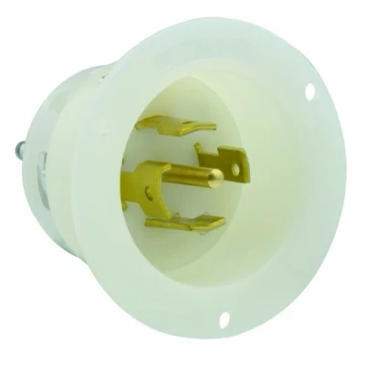 Leviton 2315 20 Amp, 125 Volt, Flanged Inlet Locking Receptacle, Industrial Grade, Grounding, White