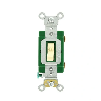 Leviton 3031 2I 30 Amp, 120/277 Volt, Toggle Single Pole AC Quiet Switch, Extra Heavy Duty Grade, Self Grounding, Ivory