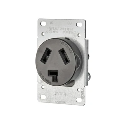 Leviton 5207 S10 30 Amp, 125/250 Volt, Nema 10 30R, 3P, 3W, Flush MTG Receptacle, Straight Blade, Industrial Grade, Non Grounding, AL CU, Side Wired, Steel Strap Black