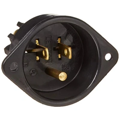 Leviton 5239 15 Amp, 125 Volt, Flanged Inlet Receptacle, Straight Blade, Commercial Grade, Grounding, Back Wired, Black