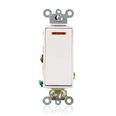 Leviton 5631 2W 20 Amp 120 Volt Decora Plus Rocker Lighted Handle, Illuminated OFF Single Pole AC Quiet Switch, White