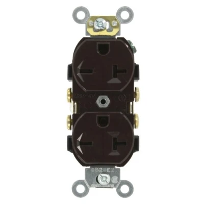 Leviton 5822 20 Amp, 250 Volt, Narrow Body Duplex Receptacle, Straight Blade, Commercial Grade, Self Grounding, Brown
