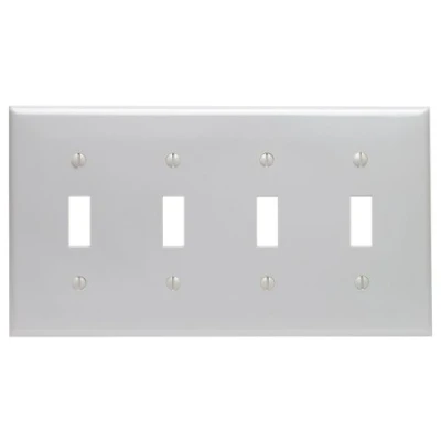 Leviton 80712 GY 4 Gang Toggle Device Switch Wallplate, Standard Size, Thermoplastic Nylon, Gray