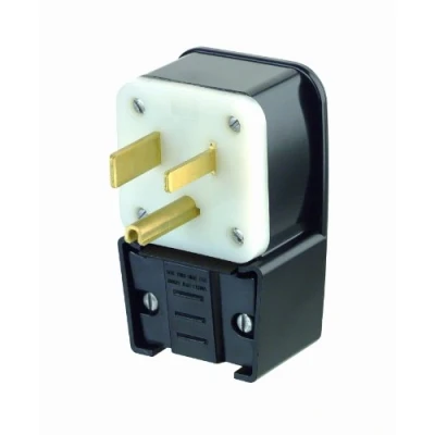 Leviton 9650 P 50 Amp, 250 Volts, Straight Blade, Plug, Industrial Grade, Grounding, Angle, Black