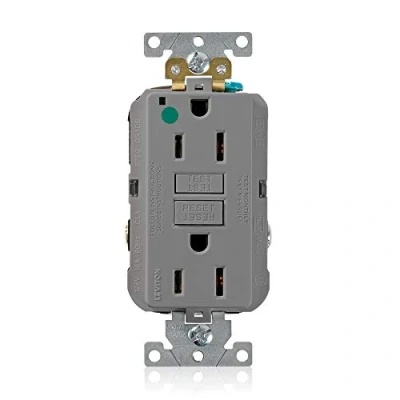 Leviton GFNT1 HGG 15A 125V Extra Heavy Duty Hospital Grade Non Tamper Resistant Duplex Self Test GFCI Receptacle, Gray, 15 Amp