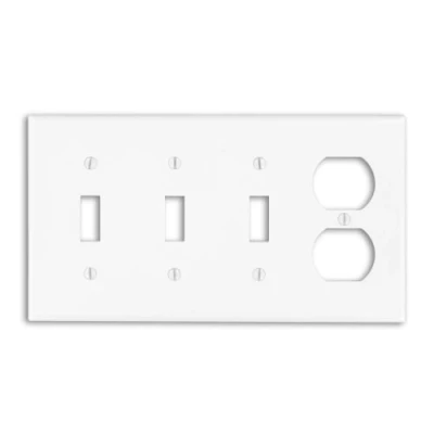 Leviton P38 W 4 Gang 3 Toggle 1 Duplex Device Combination Wallplate, Standard Size, White