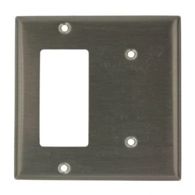 Leviton S746 N 2 Gang 1 Decora/GFCI Centered Device Decora Wallplate, Mount, Stainless Steel