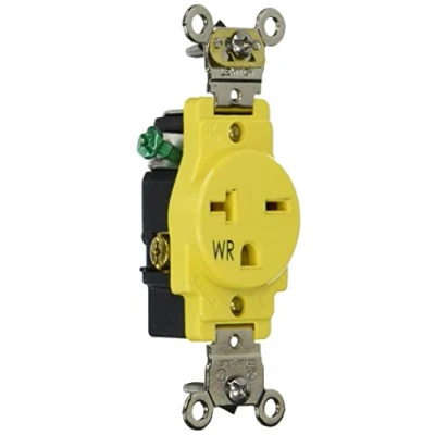 Leviton W5461 Y Single Receptacle Outlet, Weather Resistant, 20 Amp, 250 Volt, Heavy Duty Industrial Specification Grade, Back or Side Wire, Self Grounding, Yellow
