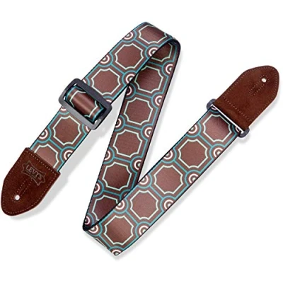 Amazon Prints Series Levy's 2" Wide Printed polyester guitar strap Adjustable to 60" One-ply printed polyester guitar strap with suede leather ends and vintage logo. Black plastic loop and slide hardware Designed by Levy's industry leading fashion designers